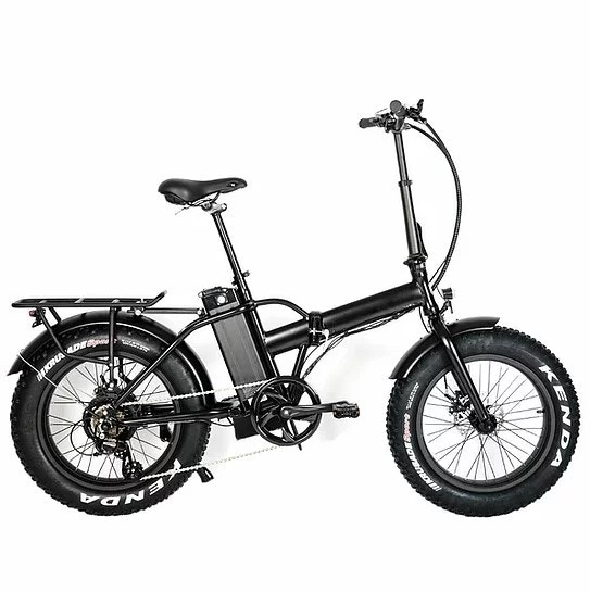 The Dogpatch Portage is a 20″ fat tire ebike that folds! This compact ebike packs a wallop with a 500W high-torque motor, 7-speed wide range gearing and a throttle. This e-bike is comparable to the RadMini but comes with a heavy duty rack and costs less. Available in caterpillar green and black.